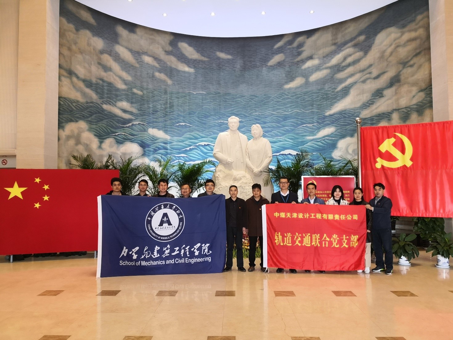 十一月的天津,秋高气爽。11月05日,力建学院党委书记单仁亮带队前往天津走访中煤天津设计公司调研“不忘初心,牢记使命”主题教育红色“1+1”支部共建党建工作。中煤天津设计公司党委书记郭庆华、党委副书记赵林海、副总经理杜玉明、轨道交通院副院长杨杰以及团委书记武晓楠等同志盛情接待。调研主要分主要领导会谈、支部共建签约座谈以及赴周邓纪念馆开展“不忘初心,牢记使命”红色主题教育三个部分。