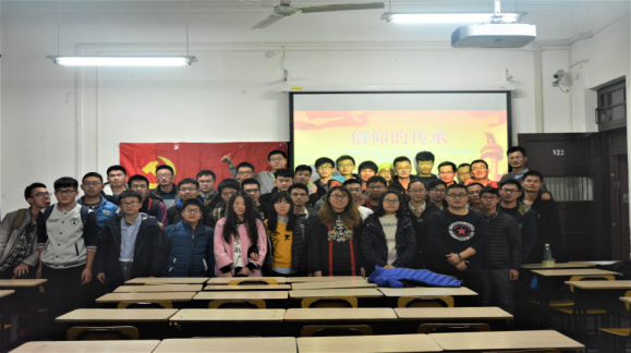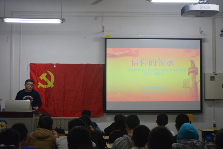 第二,研究生史月学长讲述了本次班会的主要内容“信仰的传承—信仰篇”, 并请刘兵权和贾长恒两位学长讲述自己与党的故事。刘小珍学长细致的讲述了入党的 21 个流程,梁君老师做了补充。胡金柱学长系统的介绍了社会主义核心价值观, 讲出了党对大学生的要求。信仰篇最后,史月学长提出了党对党员的要求“三严三实,两学 一做”。