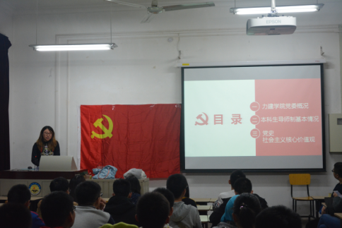 主题班会包括以下几个内容:第一,由梁君老师讲话。梁君老师介绍了星空官网党委的概况,简述了力建党委取得的成就 与举办的活动,回顾了中国共产党近百年的峥嵘岁月。介绍了我校的本科生导师制及其优点。最后,梁老师带我们回顾了中国共产党近百年的峥嵘岁月。并用 24 字的社会主义核心价值观勉励各位同学。