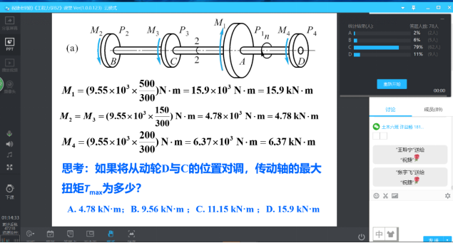 2月17日早上8:00,《工程力学B2》正式开启线上直播课的教学模式。线上教学保留了“板书+PPT”的教学形式。在以往教学设计基础上,探索了一些适合直播课的教学设计思路: