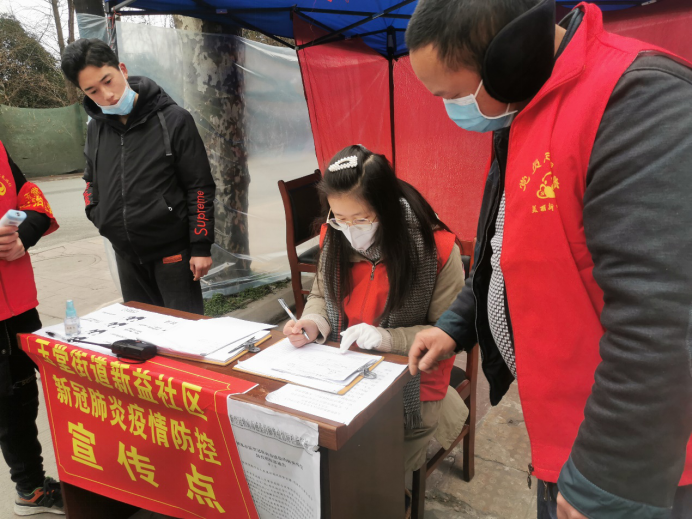 本一党支部王麦可同学在社区疫情防控宣传点登记居民出入信息