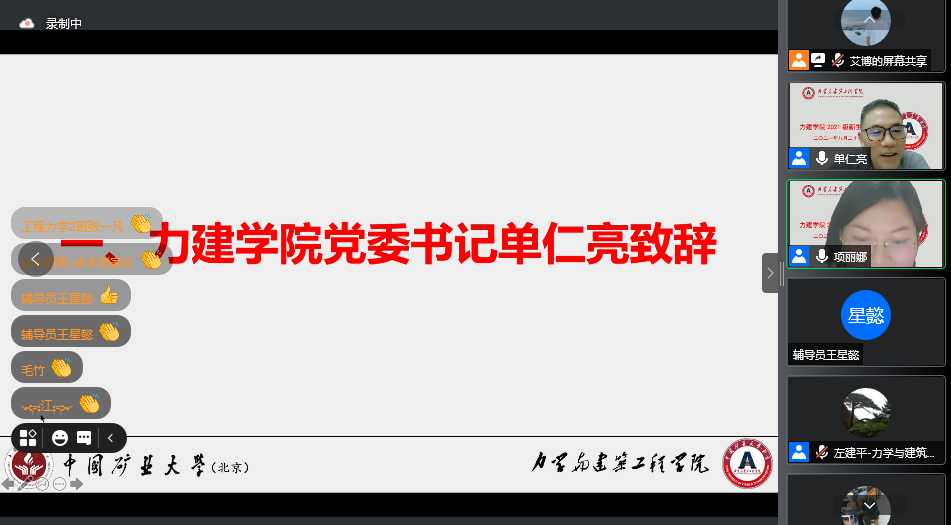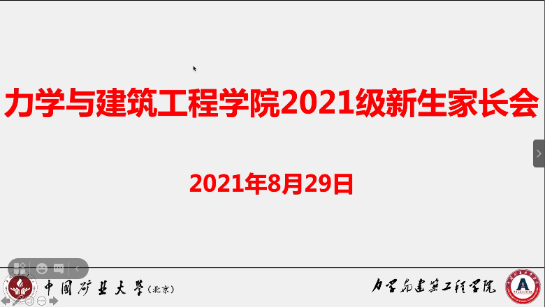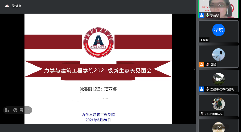 在当前疫情防控常态化的背景下,2021年8月29日晚,星空综合官网(北京)星空综合官网召开了2021级本科新生家长会。力建学院党委书记单仁亮、院长左建平、党委副书记项丽娜出席会议,2021级新生班主任、新生辅导员艾博、王星懿以及新生家长等320余人参加会议。会议由党委副书记项丽娜主持。
