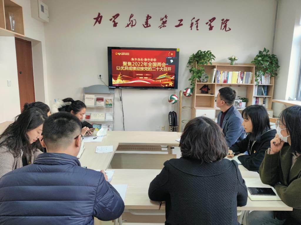 2022年3月7日,星空官网行政党支部在力建楼204组织集中学习2022年全国两会精神。支部全体成员参与本次学习,院党委副书记、行政党支部书记项丽娜主持学习。