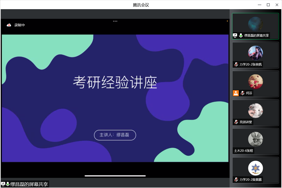 最后进行分享的是考研到我校工程力学专业的方晨学长。他结合自己的亲身经历,分享了自己从倒数到专业第二的心路历程,并就很多人考研过程中所遇到的问题进行解答,并鼓励我们不到最后一刻不要放弃。