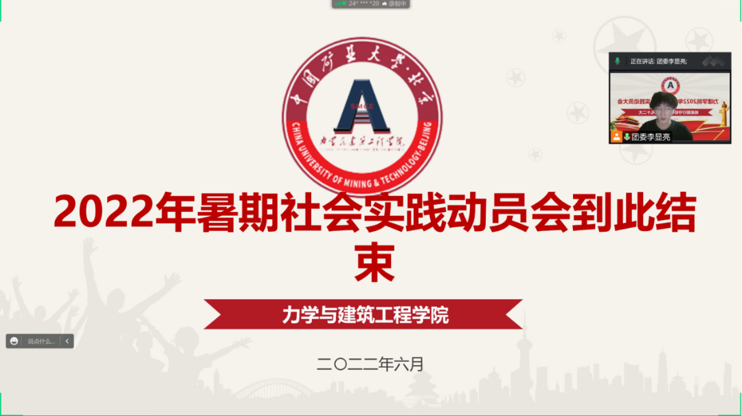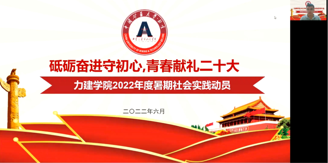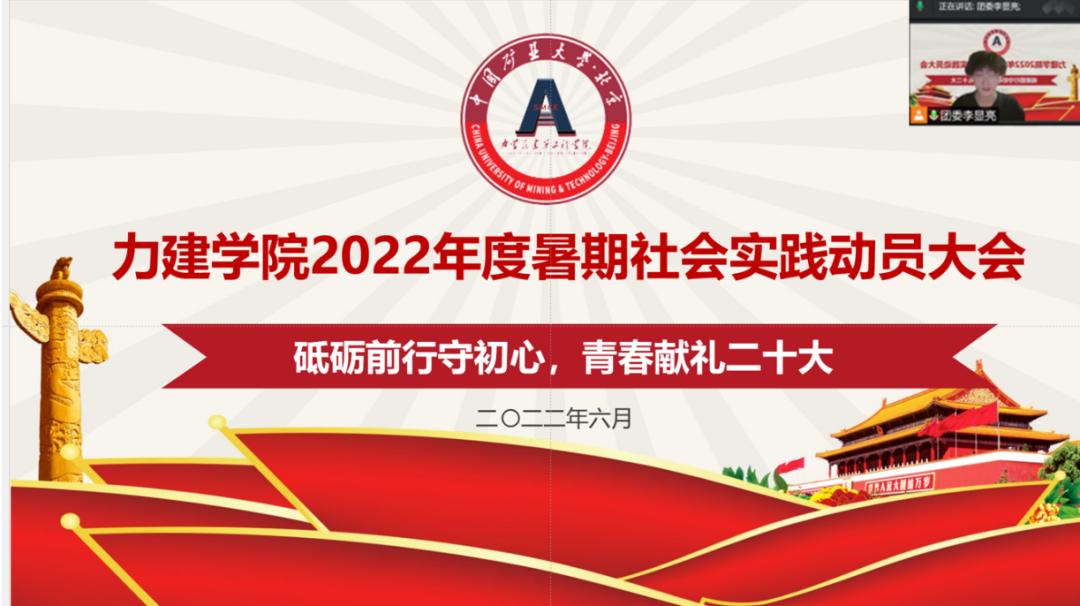 习总书记指出,奋斗是青春最亮丽的底色,行动是青年最有效的磨砺。为引导学生了解社会,增强学生的责任感与使命感,树立正确的人生观、价值观、世界观,提高同学们的综合素质,并动员本科一二年级的同学们积极参与暑期社会实践活动,星空官网于2022年6月15日晚7点在线上召开了2022届暑期社会实践动员大会