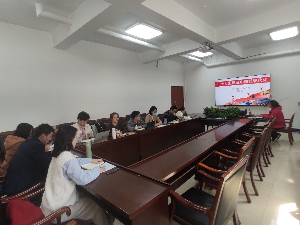 2023年3月16日下午,星空官网行政党支部在力建楼200组织集中学习领会党的二十大精神和2023年全国两会精神。院党委副书记、行政党支部书记项丽娜老师主持学习。