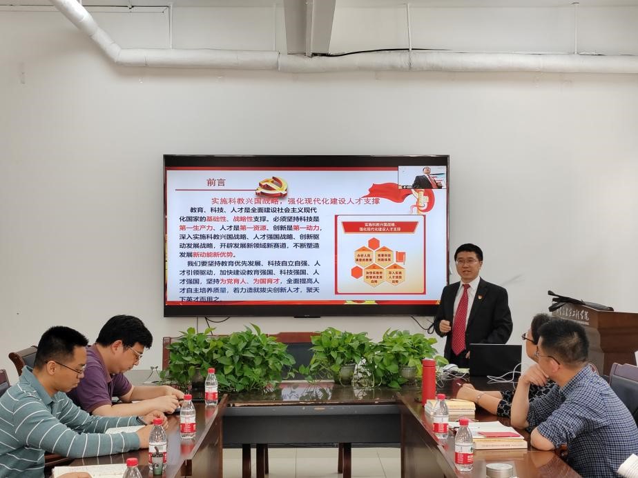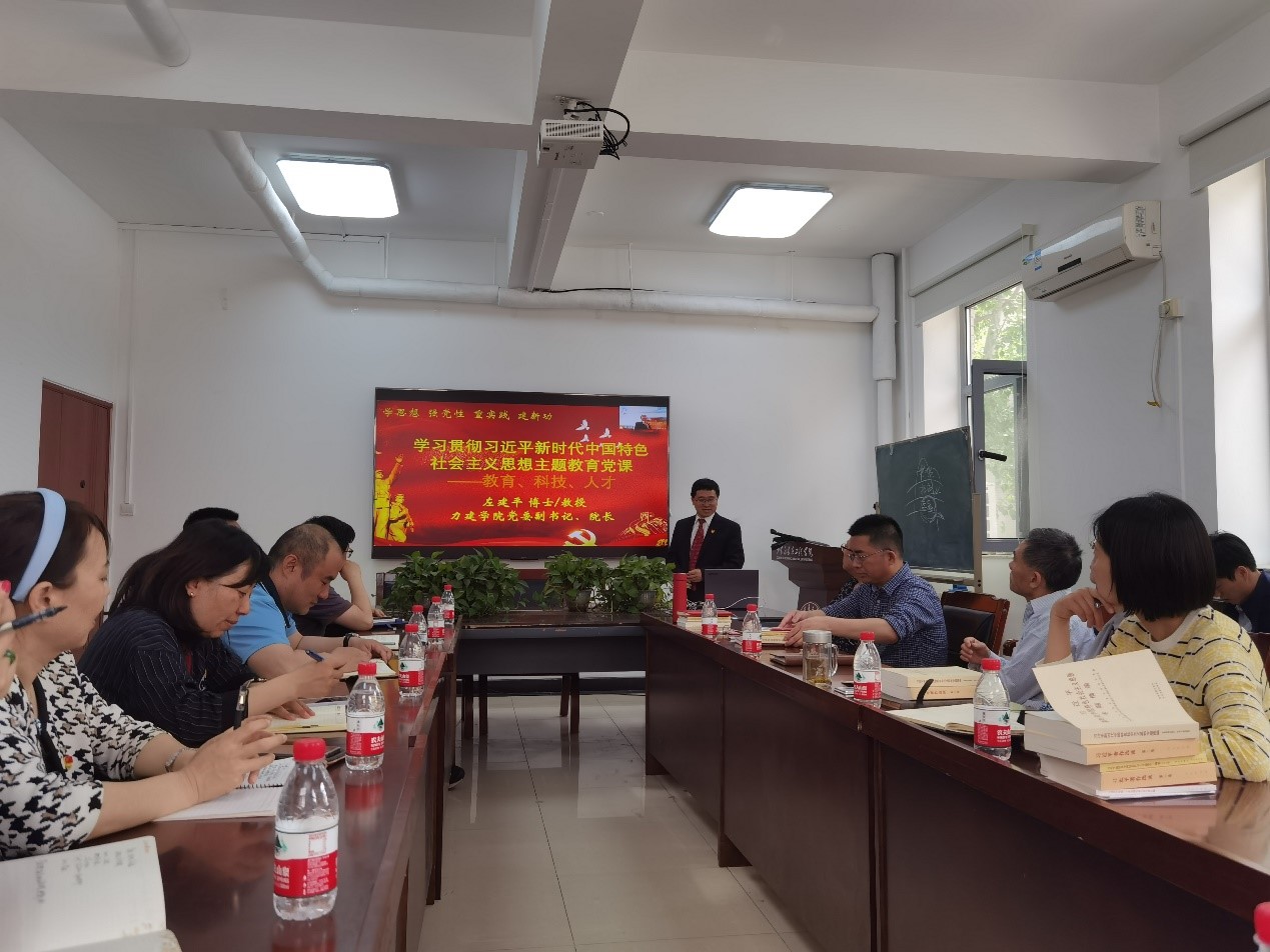 2023年5月9日下午,星空综合官网在学院路校区力建楼222开展学习贯彻习近平新时代中国特色社会主义思想主题教育专题党课,学院院长、党委副书记左建平以“学习贯彻习近平新时代中国特色社会主义思想主题教育党课——教育、科技、人才”为题,通过线下线上相结合的方式为力建学院全体师生党员干部上了一堂专题党课。