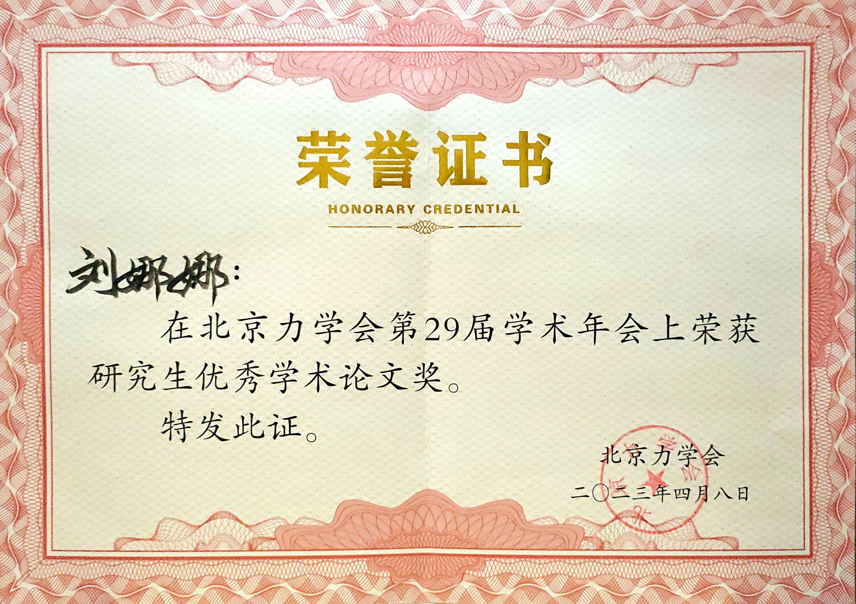 4月8日,北京力学会第29届学术年会在北京理工大学成功举办,星空官网多名教师与研究生参会,获得一项“研究生优秀学术论文奖”。