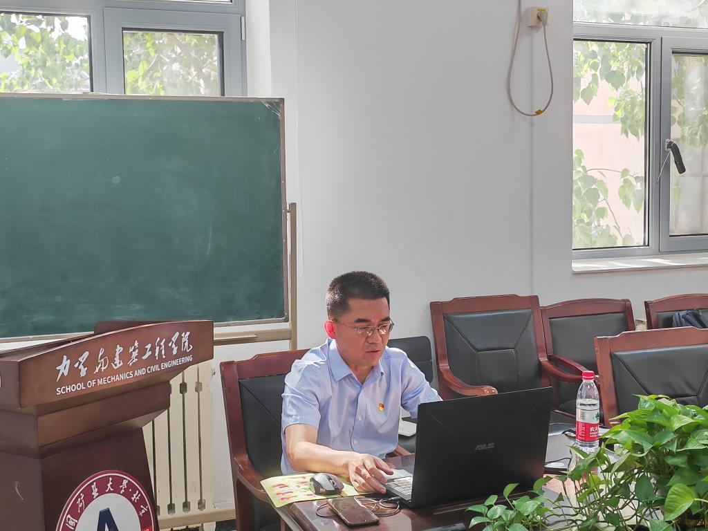 为扎实开展学习贯彻习近平新时代中国特色社会主义思想主题教育,贯彻落实习近平新时代中国特色社会主义思想主题教育相关工作安排,2023年5月23日下午,学院副院长岳中文以习近平总书记在中国共产党第二十次全国代表大会上关于党的自我革命的讲话为切入点,在力建楼222开展主题为“学习贯彻习近平新时代中国特色社会主义思想——毫不动摇把党建设得更加坚强有力”教育党课,硕21-3班党支部全体成员参加学习。