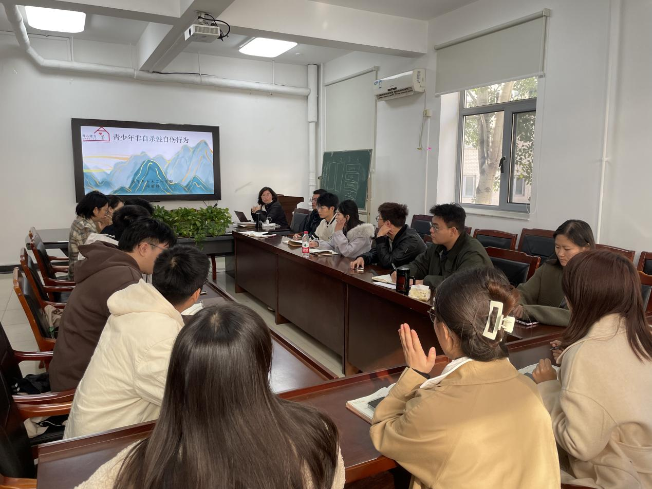 为进一步提升辅导员心理课程教学素质和心理工作能力,加强心理健康教育,“育心建力”心理辅导工作站邀请国家二级心理咨询师、中国心理学会注册心理师项丽娜老师,举办主题为“青少年非自杀性自伤行为”的心理培训讲座,有来自学校各学院的20名教师参与培训。