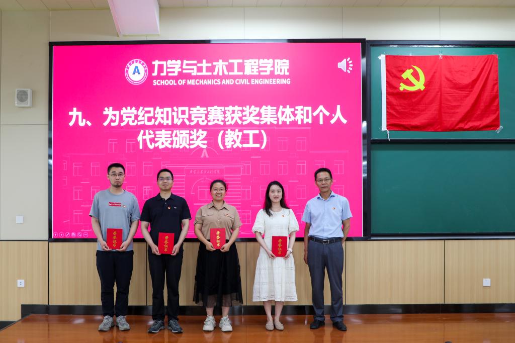 会上公布了学院“学条例·守党纪·促廉洁·扬清风”党纪知识竞赛”获奖集体和个人,崔希民予以颁奖表彰。会议宣读了2024年上半年新发展党员名单,崔希民为新发展党员代表佩戴党徽和发放党章。会议说明了2024届218名毕业生党员组织关系事宜。