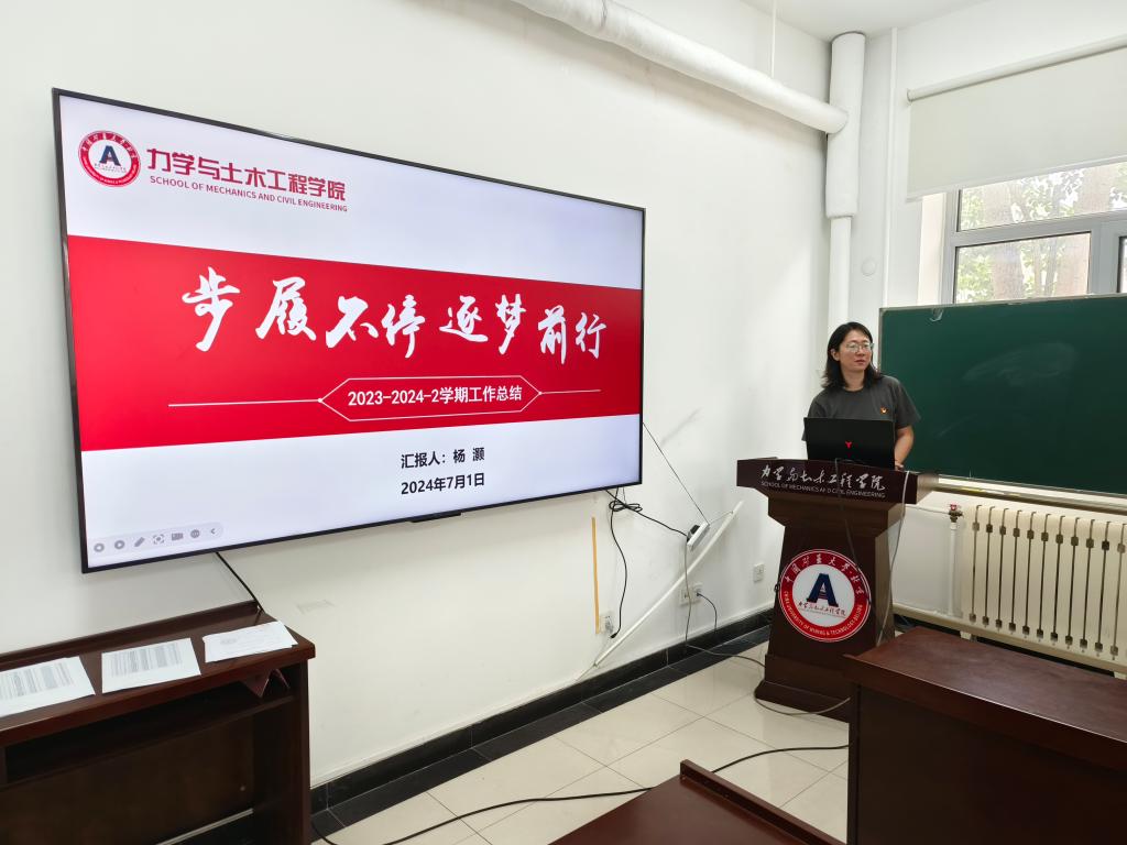 为实现立德树人根本目标,提升学院辅导员队伍建设水平,力学与土木工程学院于7月1日召开2024上半年辅导员工作总结大会,院党委副书记项丽娜同志出席会议,全体专兼职辅导员进行工作总结,会议由院学工办主任杨灏主持。
