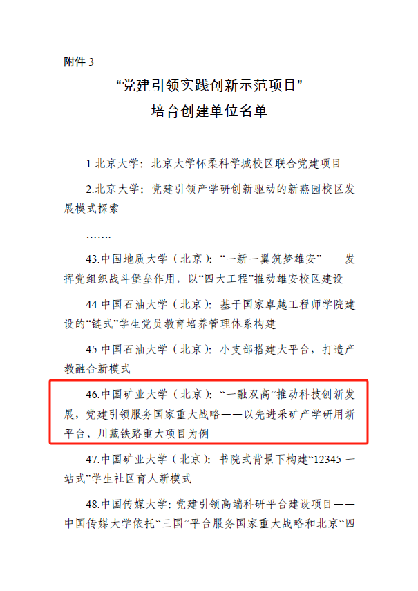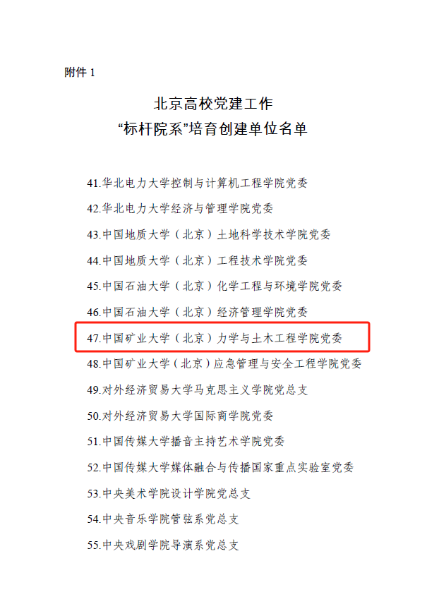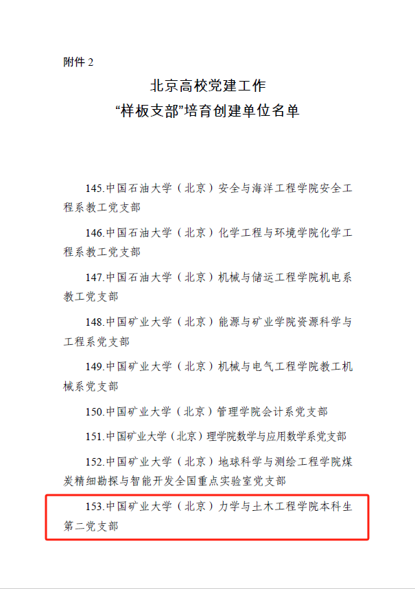 星空官网党委申报的单位和项目全部获评,2024年党建工作取得新的突破和重要进展。“力学与土木工程学院党委”入选北京高校党建工作“标杆院系”,“力学与土木工程学院本科生第二党支部”入选北京高校党建工作“样板支部”,力学与土木工程学院党委联合能源与矿业学院党委负责申报的《“一融双高”推动科技创新发展,党建引领服务国家重大战略——以先进采矿产学研用新平台、川藏铁路重大项目为例》入选“党建引领实践创新示范项目”。