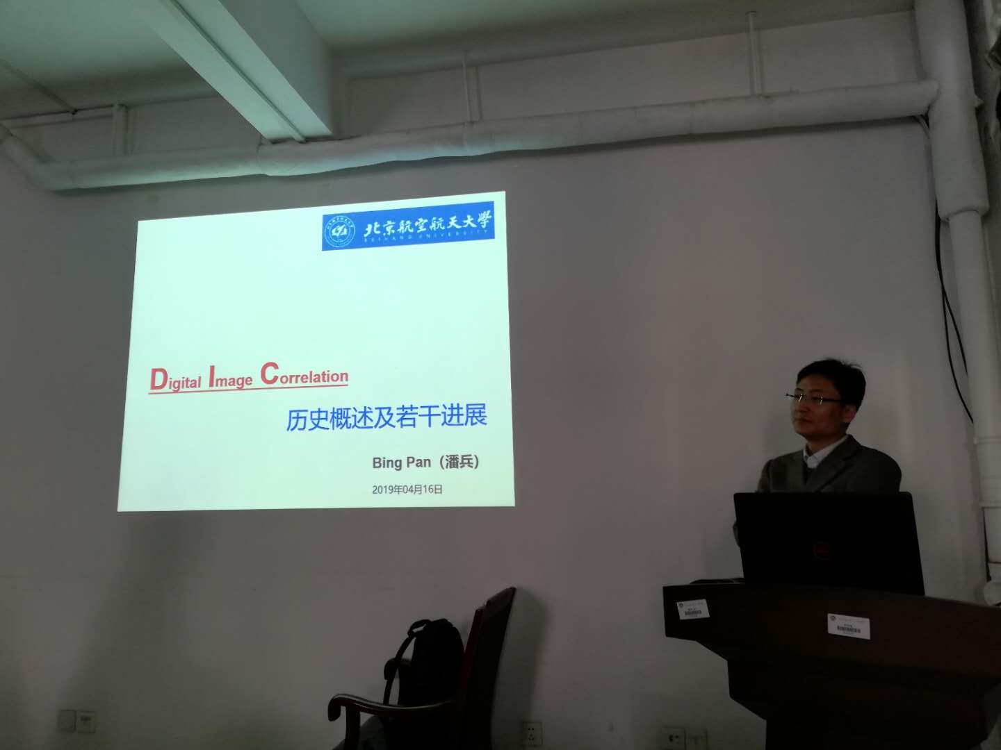 4月16日上午,北京航空航天大学潘兵教授在力建楼222为星空官网师生作了题为“DIC历史概述及若干进展”的学术报告。报告会由岩土工程系岳中文教授主持,星空官网李德建教授、杨立云副教授、杨国梁副教授、王雁冰讲师及研究生约50人参加了报告会。
