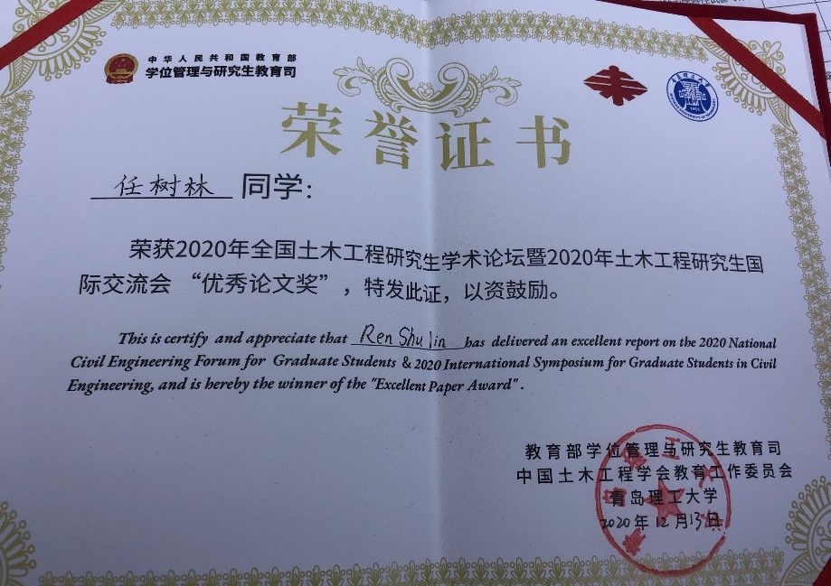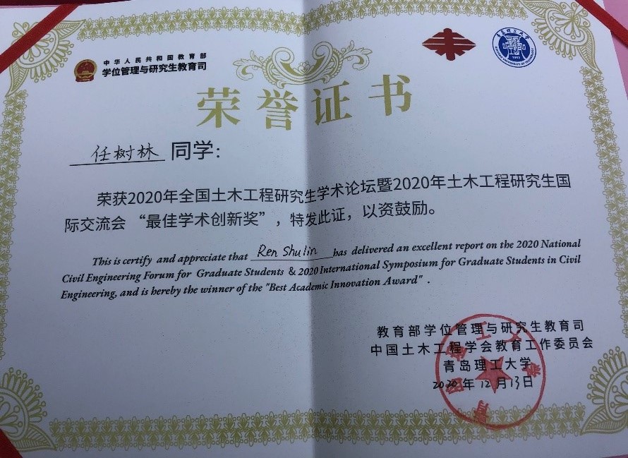 经过20多名来自各地知名高校的专家对一百多名研究生的投稿论文与PPT报告的综合评选,最终星空官网任树林博士获得“优秀论文奖”(仅18人获奖)和最佳学术创新奖(仅9人获奖);