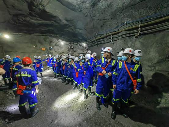 711日,星空官网师生抵达金诚信海南石碌项目部。同学们首先参加了系统的井下生产流程与安全教育专题培训,为深入一线工作奠定了坚实的基础。713日清晨630分,全体师生参加班前会,并庄严举行了安全宣誓仪式,随后深入至矿区-90m-120m的工作面进行实地学习。在井下一线,工作人员详细讲解了矿井的结构布局、开采工艺、机械装备等,展示了电机车高效运矿、出矿工作流程,使理论知识与现场实践紧密结合。同学们结合现场情况,与工作人员进行了深入交流,现场互动热烈,学习氛围浓厚。当天中午,师生们在-120m 工作面这个特殊的环境进行午餐,给各位同学留下了深刻记忆。