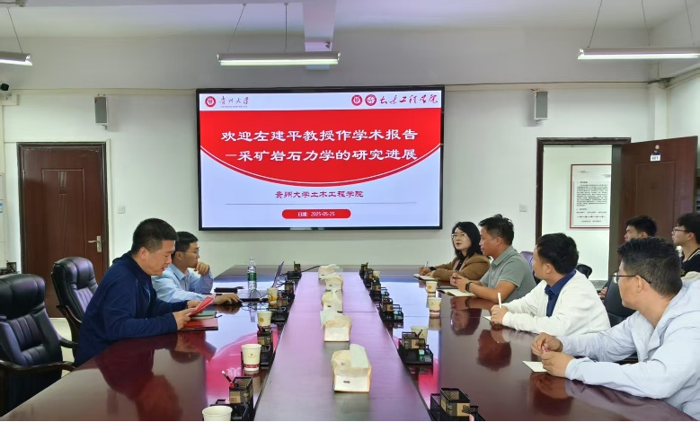 2025年5月25日,我校力学与土木工程学院院长左建平教授赴贵州大学土木工程学院围绕学科专业建设、科研平台搭建,招生宣传等方面进行交流。会议现场左建平作题为“采矿岩石力学的研究进展”的学术报告。贵州大学土木工程学院院长赵瑜及师生代表共同参加本次报告。