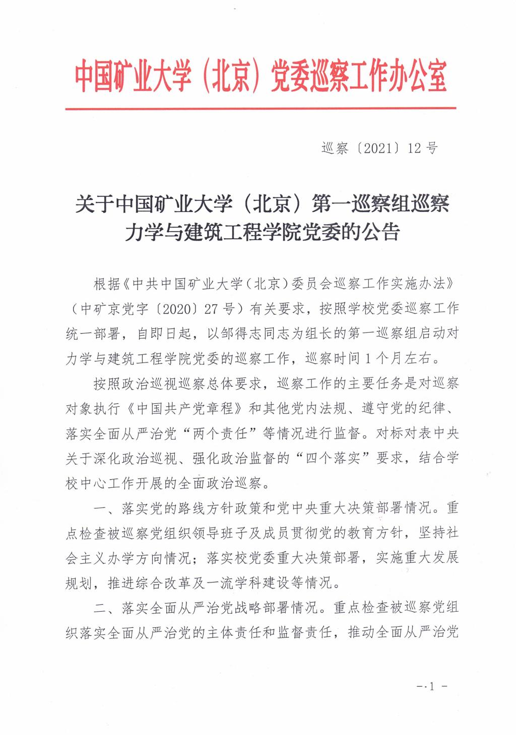 关于星空综合官网(北京)第一巡察组巡察星空综合官网党委的公告