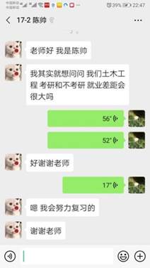 首先是学习方面,由于疫情的影响,学生们都无法回到学校学习,只能通过线上开学的方式来进行专业课的学习。线上的学习不同于线下,在线上开学老师无法和学生进行面对面地互动,不能很好地掌握学生上课时的具体状态。对于学生而言,线上学习相较线下学习来说更加的自由了。由于没有了足够的约束,对于一部分自律能力不够的学生来说,学习的效果就会大打折扣。因此,吴老师时常通过网络的方式,如微信群、QQ群以及腾讯会议等方式,定期地去和学生联系,指导学生制定阶段性的学习计划,督促学生提高自律能力,以此来保证线上学习的学习质量(如图7所示)。