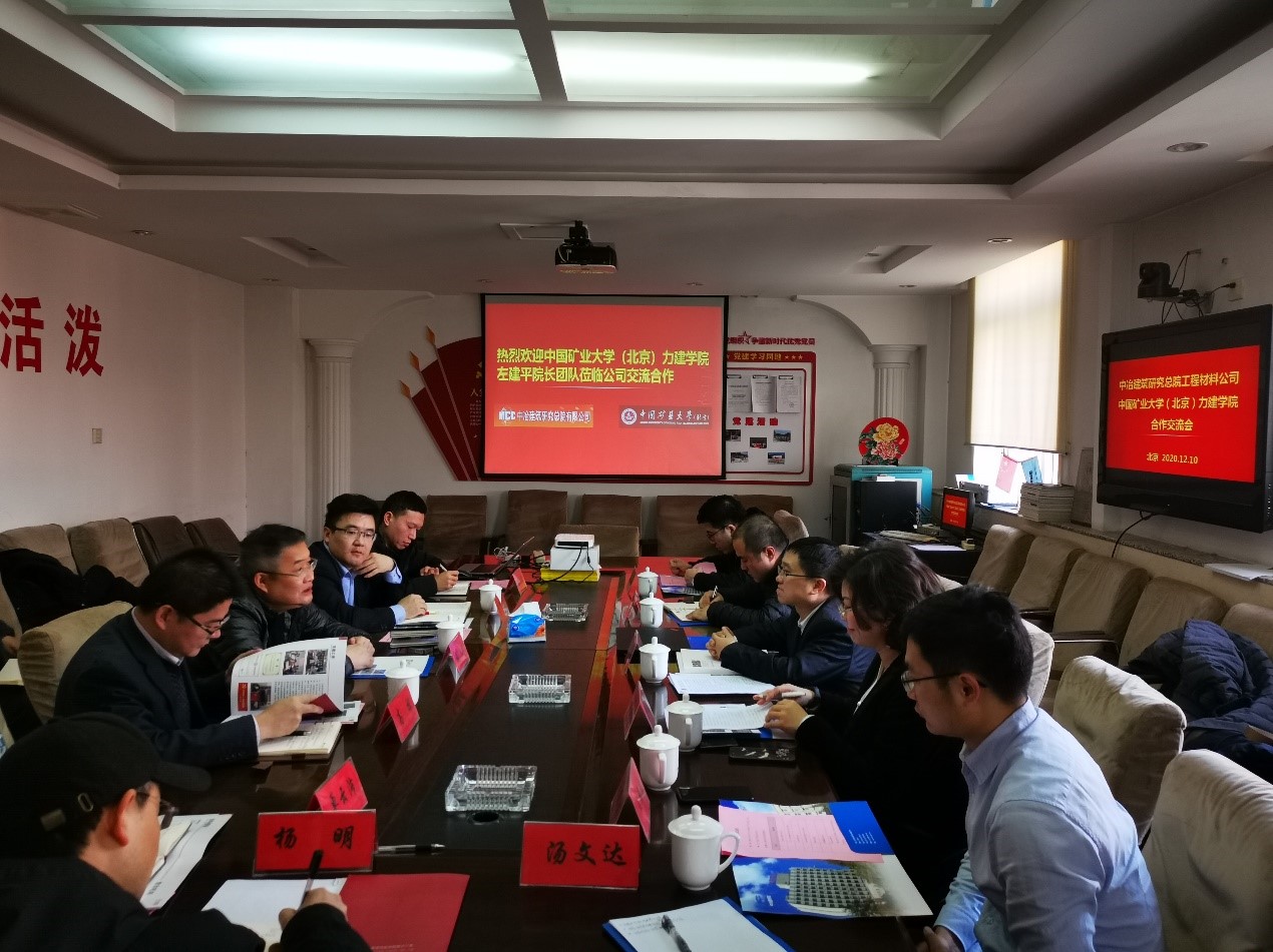 2020年12月12日,力建学院院长左建平带队一行六人赴中冶建筑研究总院工程材料公司走访调研,共商校企合作事宜。力建学院党委副书记项丽娜,中冶建筑研究总院工程材料公司总经理张剑,书记、副总经理高栋,副总经理韩宇栋、邓宽,力建学院建筑工程系主任赵卫平、副主任王振波,工程力学系副主任李明耀,研究生辅导员汤文达,中冶建筑研究总院工程材料公司综合办公室主任单云沛,科研助理齐晓彤参加座谈。